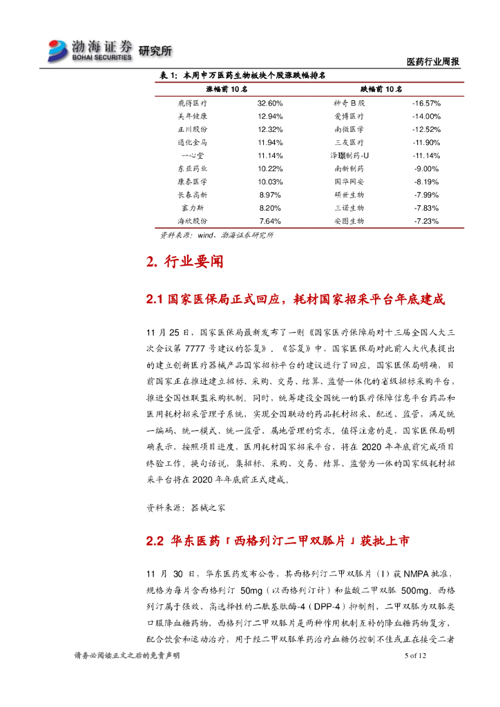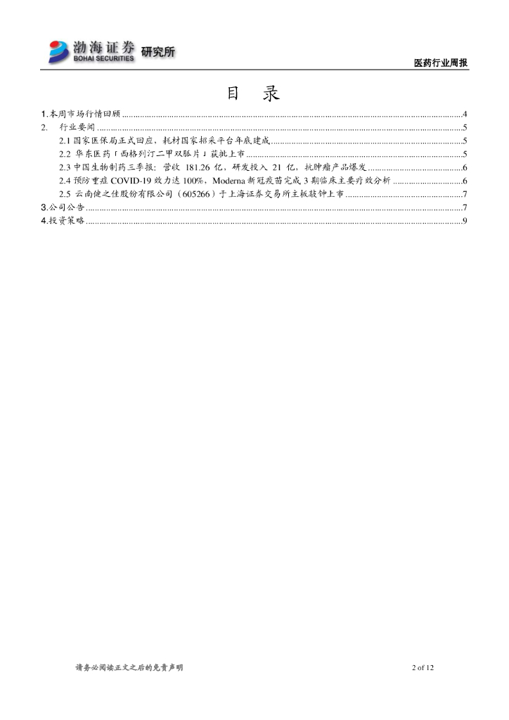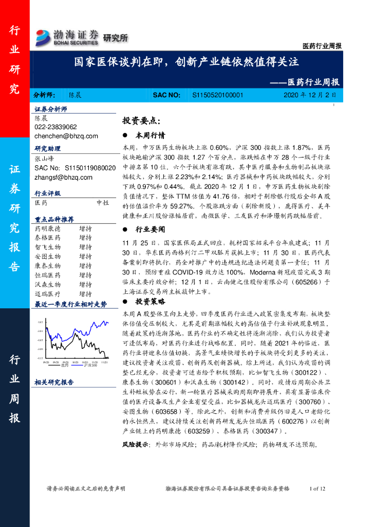 渤海证券:医药行业周报:国家医保谈判在即,创新产业链依然值得关注.pdf