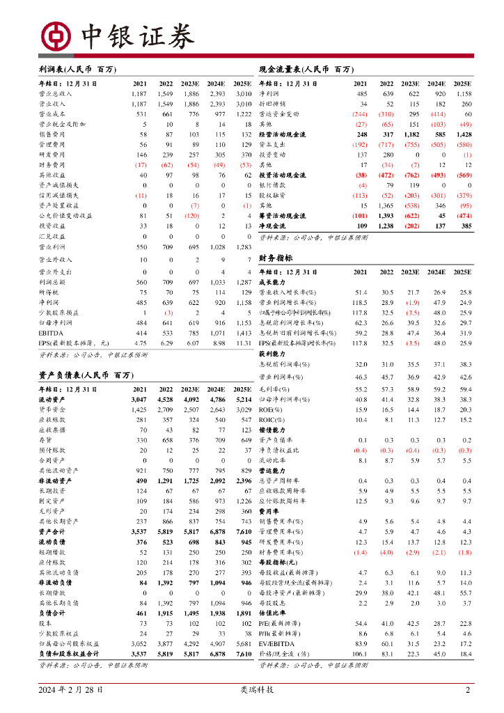 中银证券:奕瑞科技(688301)-业绩整体增长平稳,长期看好公司高端制造能力.pdf