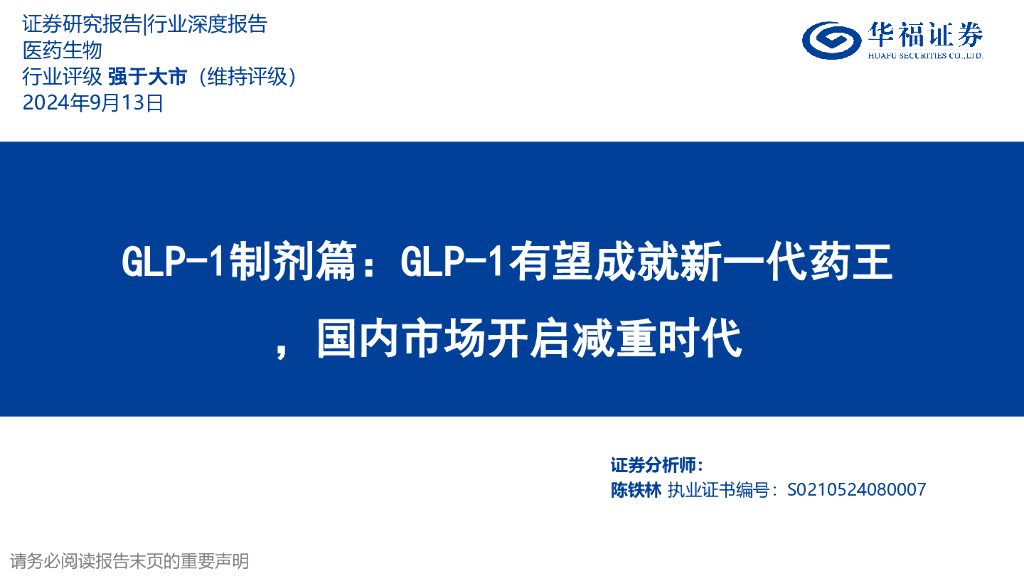 华福证券:医药生物:GLP-1制剂篇:GLP-1有望成就新一代药王,国内市场开启减重时代.pdf