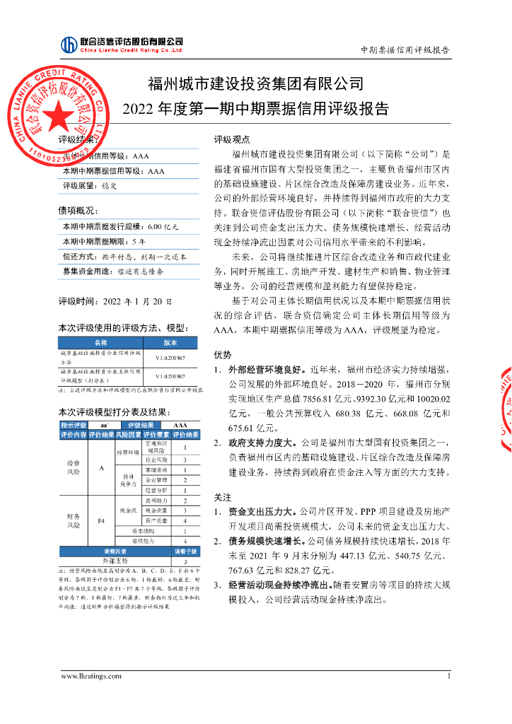 联合资信:福州城市建设投资集团有限公司2022年度第一期中期票据信用评级报告.pdf