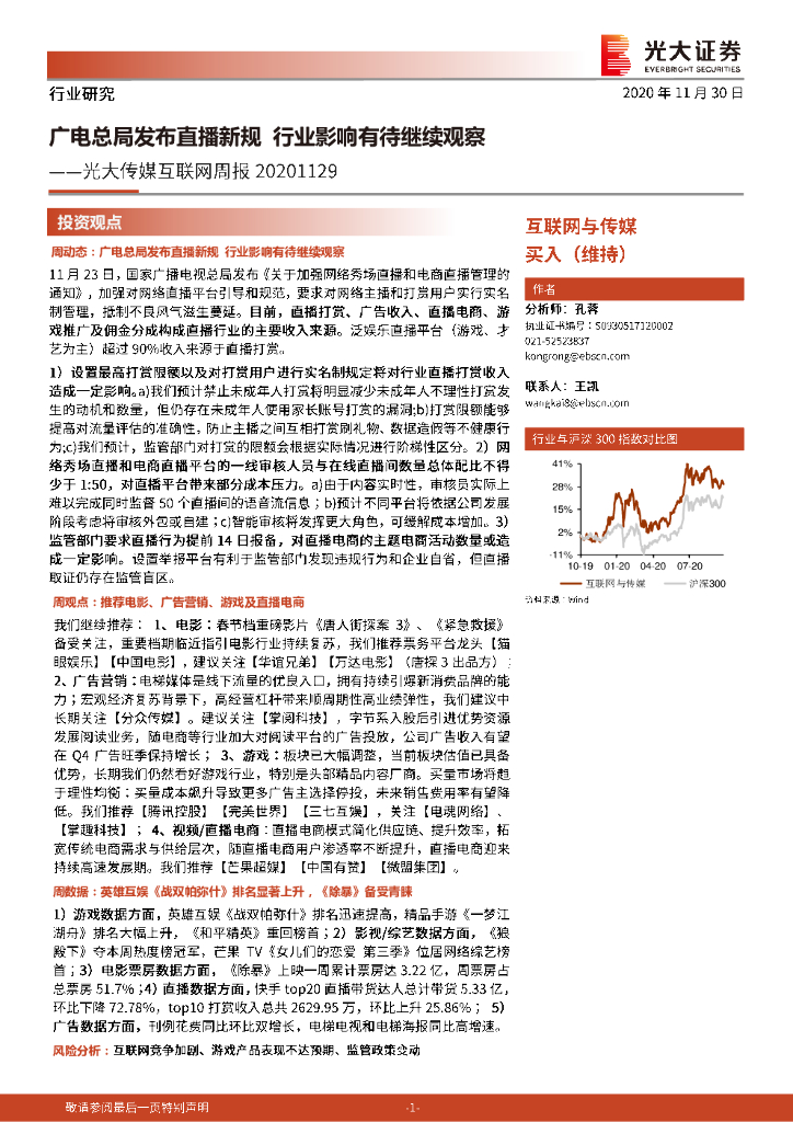 光大证券:光大传媒互联网周报:广电总局发布直播新规 行业影响有待继续观察.pdf