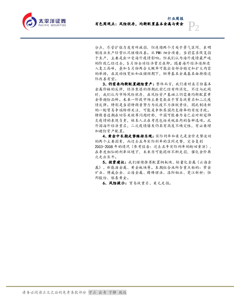 太平洋证券:有色周观点:风险犹存,均衡配置基本金属与黄金.pdf