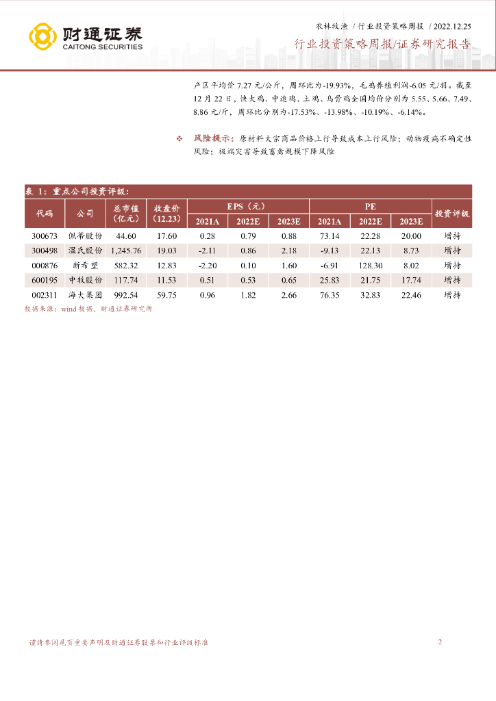 财通证券:农业重点数据跟踪周报:畜禽价格回升仍需等待消费恢复.pdf