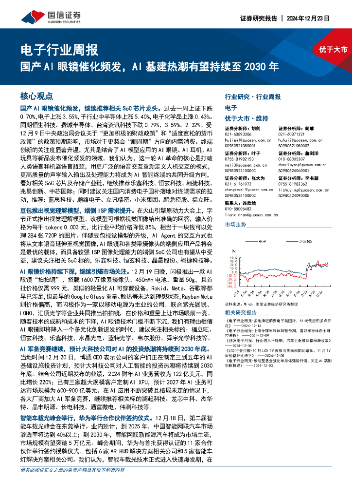 国信证券:电子行业周报:国产AI眼镜催化频发,AI基建热潮有望持续至2030年.pdf