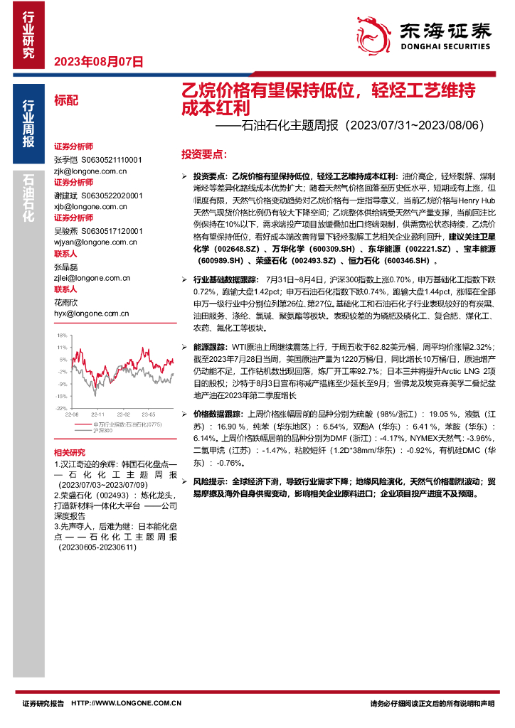 东海证券:石油石化主题周报:乙烷价格有望保持低位,轻烃工艺维持成本红利.pdf