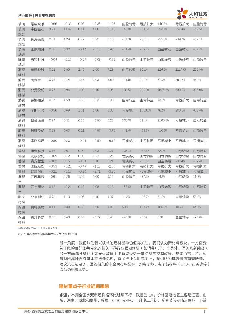 天风证券:建筑材料行业建材业绩预告总结:水泥玻纤盈利达历史底部,消费建材减值风险进一步出清.pdf