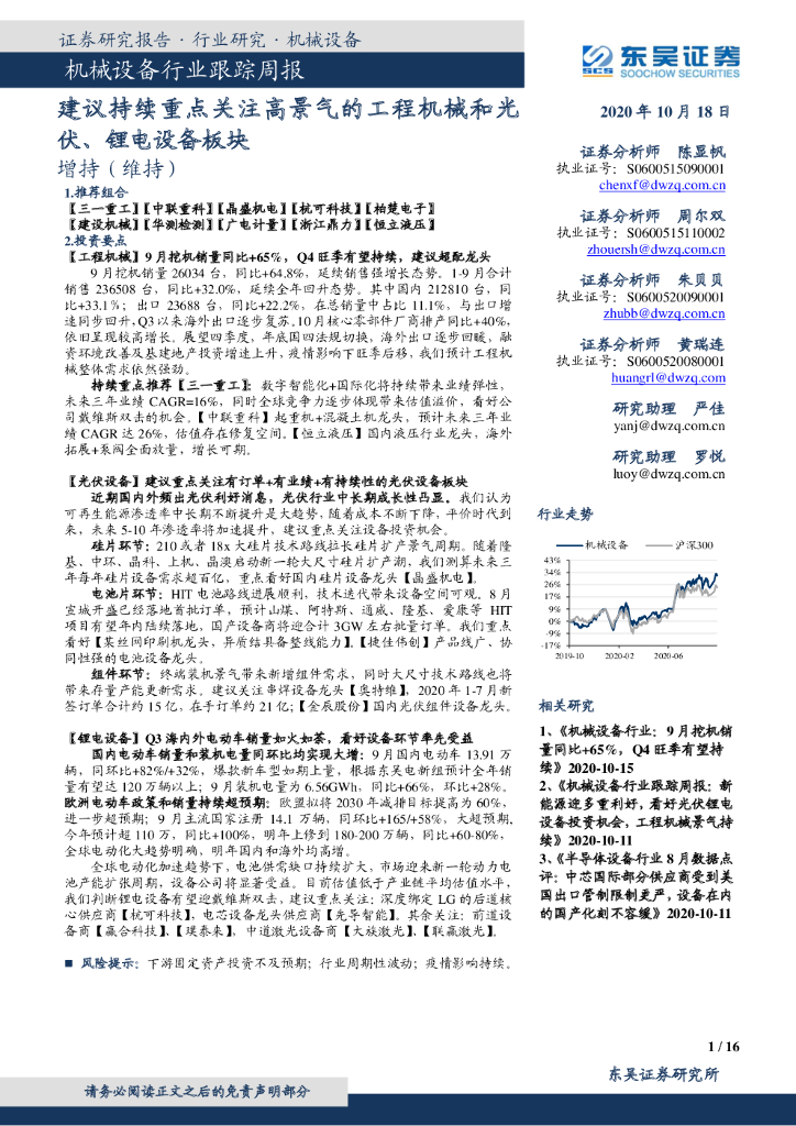 东吴证券:机械设备行业跟踪周报:建议持续重点关注高景气的工程机械和光伏、锂电设备板块.pdf