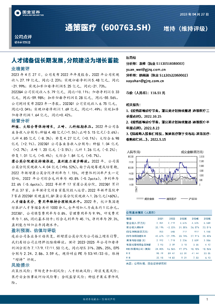 国金证券:通策医疗(600763)-人才储备促长期发展,分院建设为增长蓄能.pdf