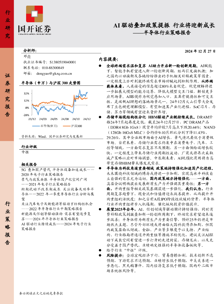 国开证券:半导体行业策略报告:AI驱动叠加政策提振行业将迎新成长.pdf