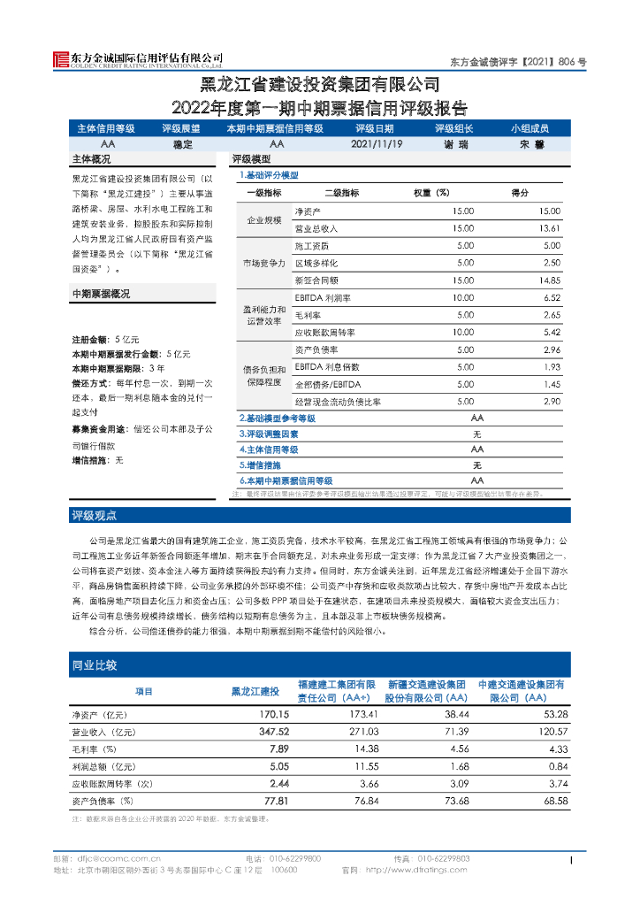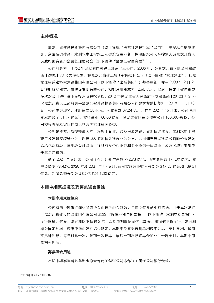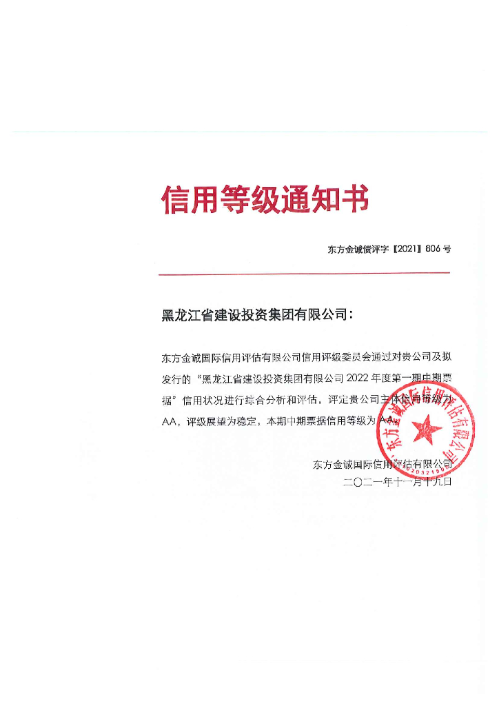 东方金诚:黑龙江省建设投资集团有限公司2022年度第一期中期票据信用评级报告.pdf