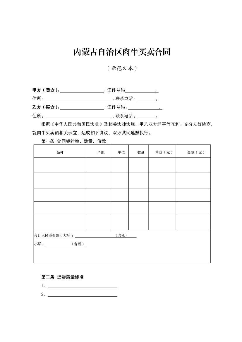 内蒙古自治区肉牛买卖合同(示范文本).pdf