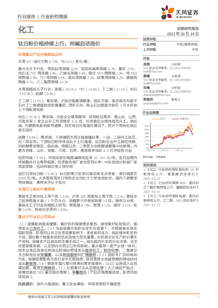 天风证券:化工行业研究周报:钛白粉价格持续上行,纯碱启动涨价.pdf