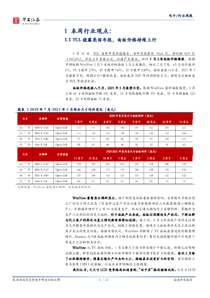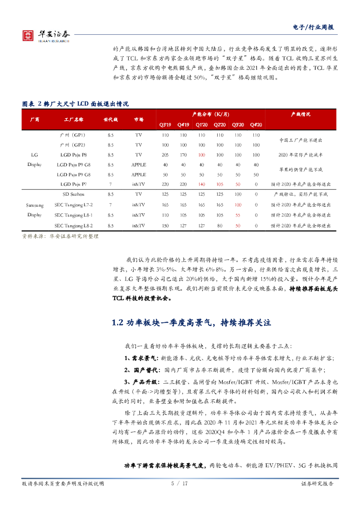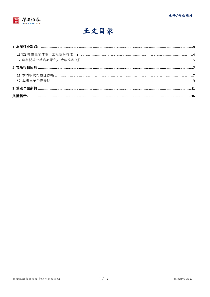 华安证券:电子行业周报:持续关注一季报确定性高的面板和功率板块.pdf