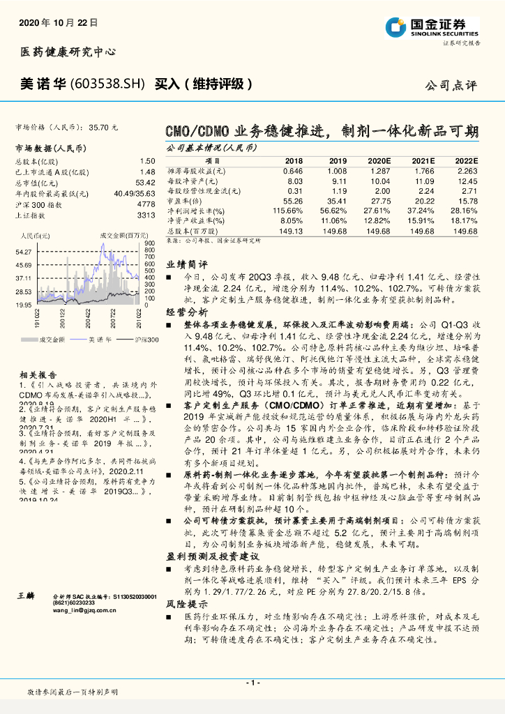 国金证券:美诺华(603538)-CMO/CDMO业务稳健推进,制剂一体化新品可期.pdf
