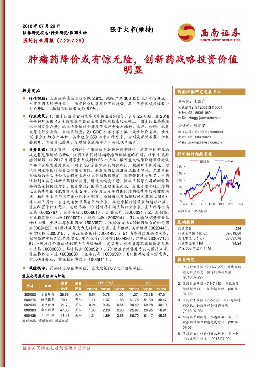 西南证券:医药行业周报:肿瘤药降价或有惊无险,创新药战略投资价值明显.pdf