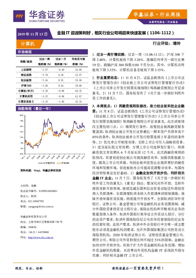 华鑫证券:计算机行业周报:金融IT迎政策利好,相关行业公司将迎来快速发展.pdf