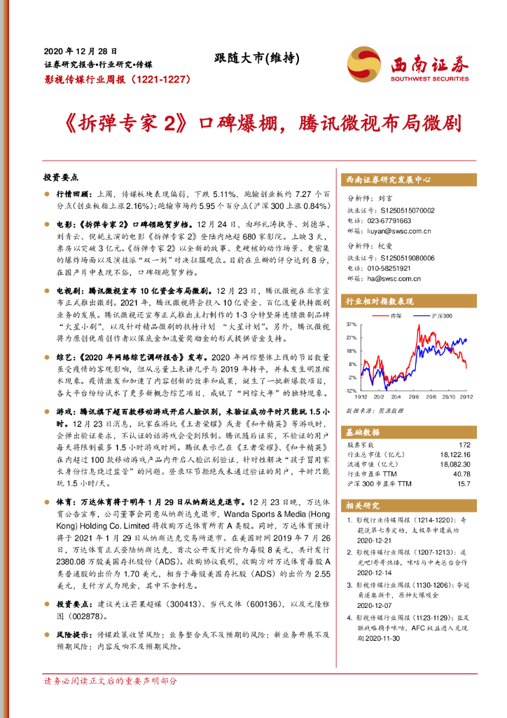 西南证券:影视传媒行业周报:《拆弹专家2》口碑爆棚,腾讯微视布局微剧.pdf