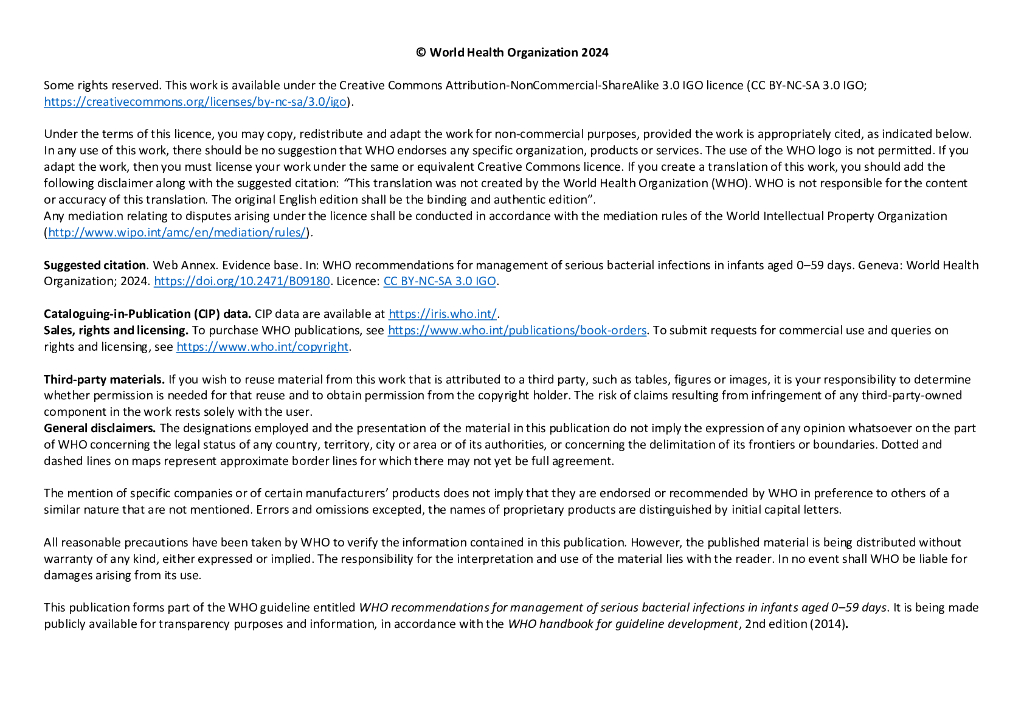 WHO世界卫生组织:2024年世卫组织关于0-59岁婴儿严重细菌感染管理的建议报告(英文版).pdf