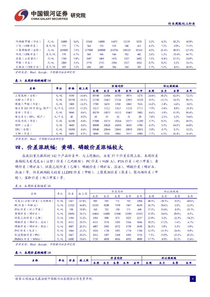中国银河:化工行业周报:黄磷、磷酸价格上涨,重点关注细分龙头表现.pdf