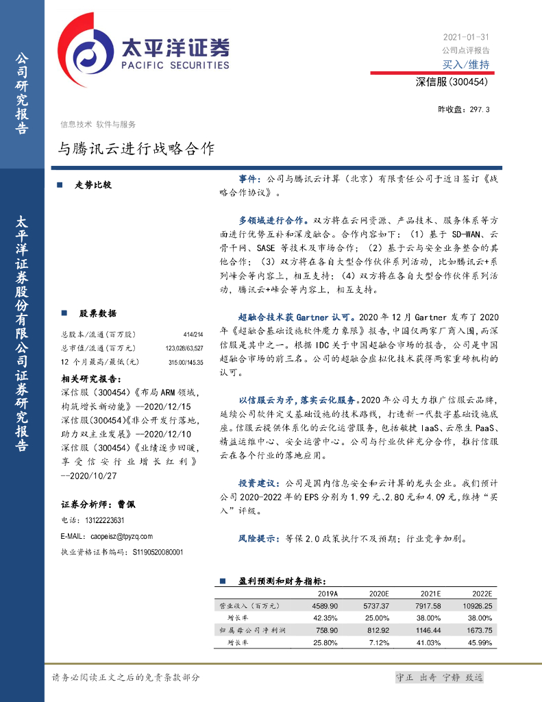 太平洋证券:深信服(300454)-与腾讯云进行战略合作.pdf