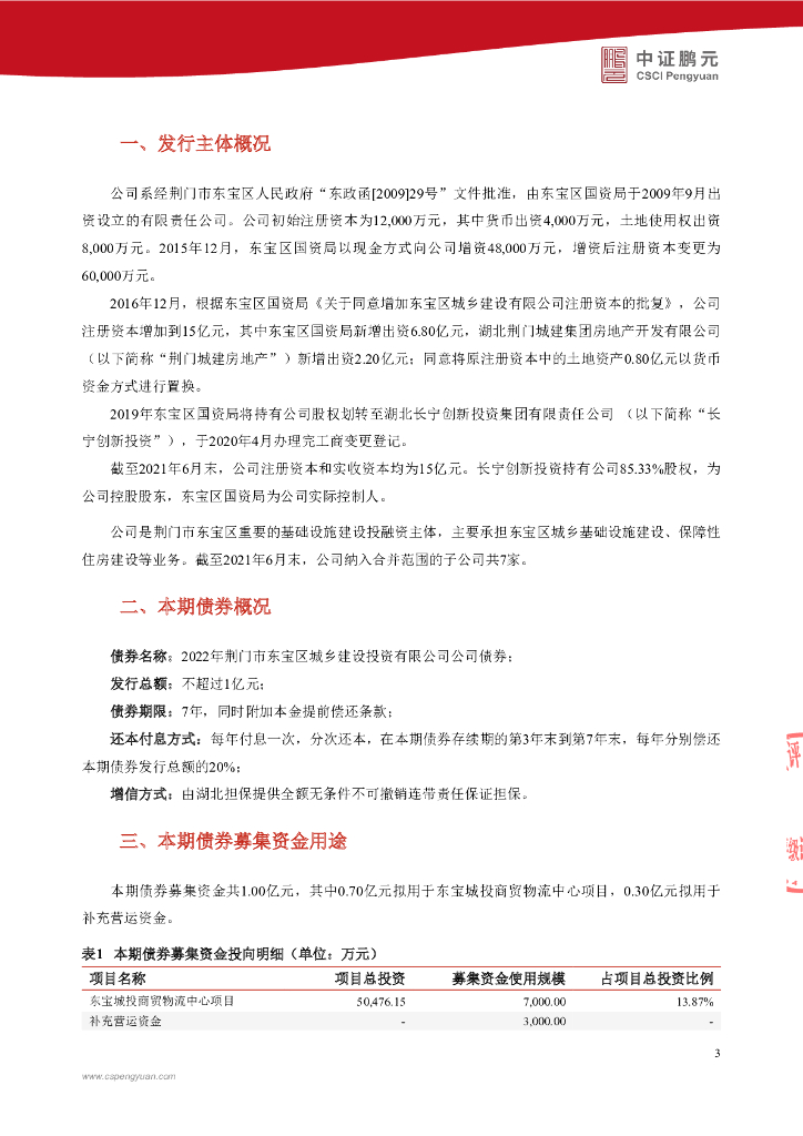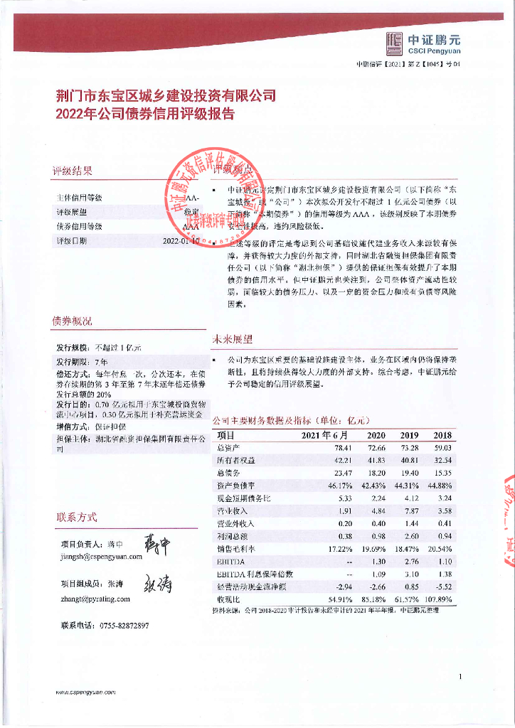 鹏元:荆门市东宝区城乡建设投资有限公司2022年公司债券信用评级报告.pdf