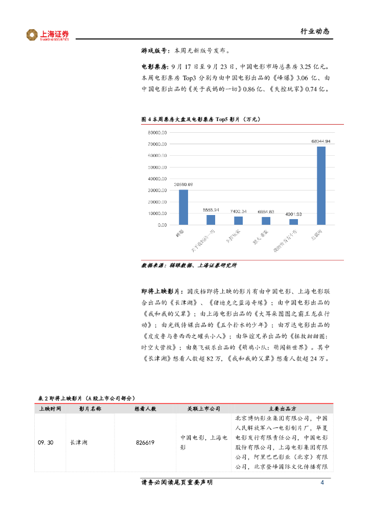 国信证券:电影行业点评:国庆档票房同比向下,持续看好影视行业政策拐点与AIGC落地应用