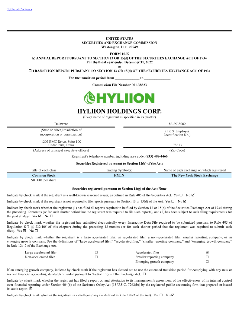 Hyliion Holdings Corp.(HYLN)2022财年年度报告(英文版).pdf