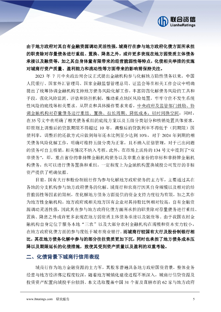 联合资信:2024年化债背景下城商行的信用表现与破局之策报告.pdf