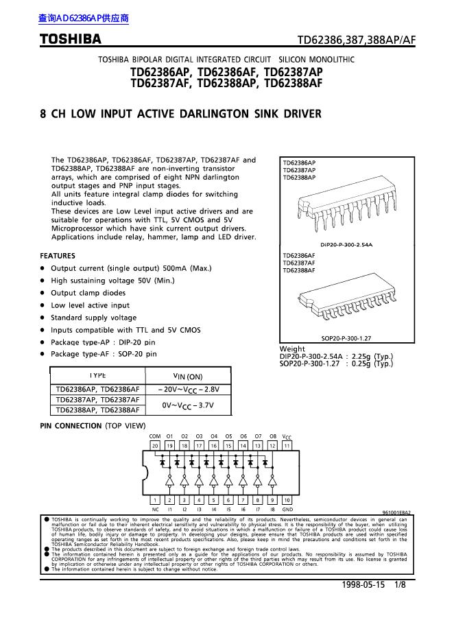 东芝 TD62386AP, TD62386AF, TD62387AP, TD62387AF, TD62387AP, TD62388AF 数据手册.pdf