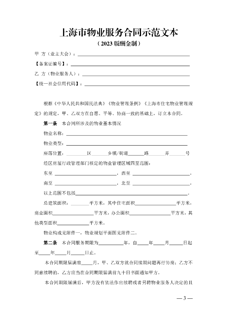上海市房屋管理局:上海市物业服务合同示范文本(2023版酬金制).pdf
