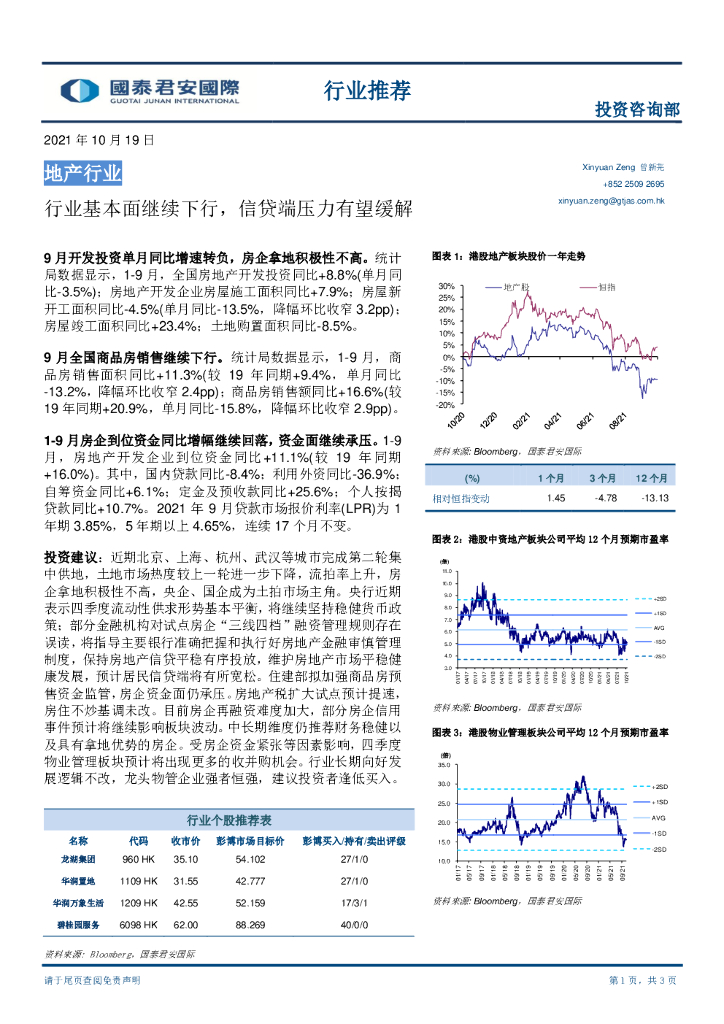 国泰君安证券(香港):地产行业:行业基本面继续下行,信贷端压力有望缓解.pdf