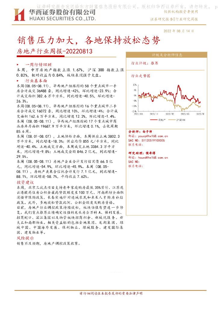 华西证券:房地产行业周报:销售压力加大,各地保持放松态势.pdf