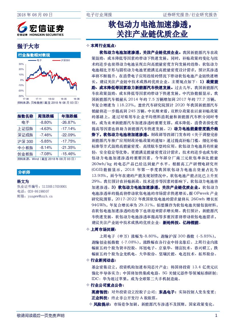 宏信证券:电子行业周报:软包动力电池加速渗透,关注产业链优质企业.pdf