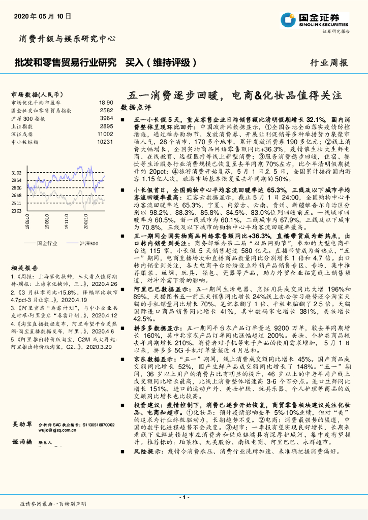 国金证券:批发和零售贸易行业研究:五一消费逐步回暖,电商&化妆品值得关注.pdf