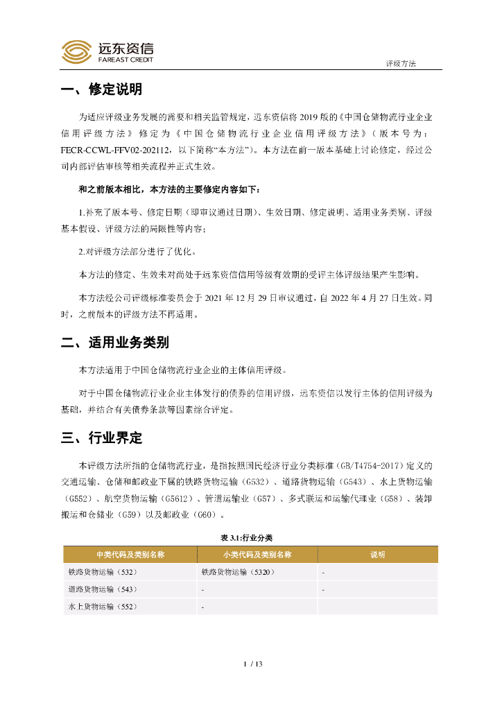 远东资信:中国仓储物流行业企业信用评级方法.pdf