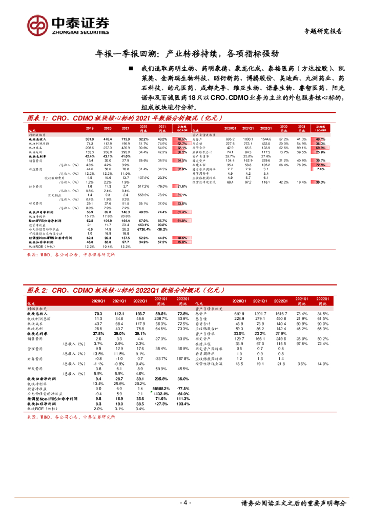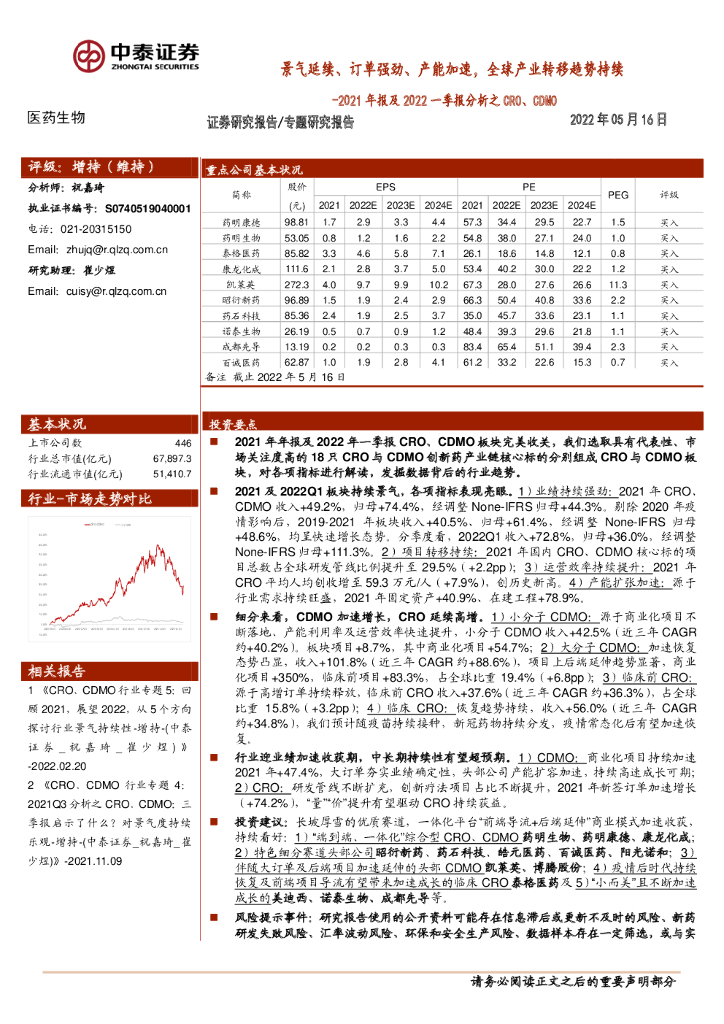 中泰证券:2021年报及2022一季报分析之CRO、CDMO:景气延续、订单强劲、产能加速,全球产业转移趋势持续.pdf