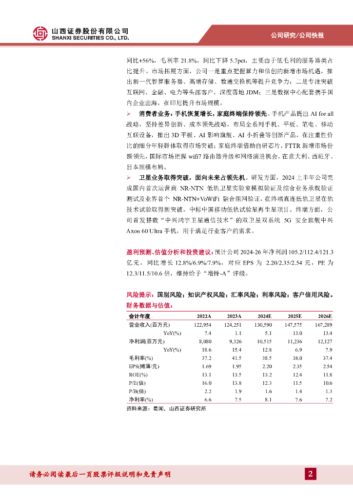 山西证券:中兴通讯(000063)-算力、手机等第二曲线业务加速拓展,经营维持稳中有进.pdf
