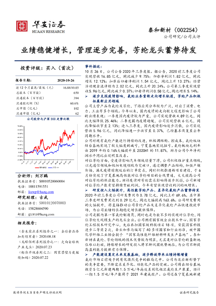 华安证券:泰和新材(002254)-业绩稳健增长,管理逐步完善,芳纶龙头蓄势待发.pdf