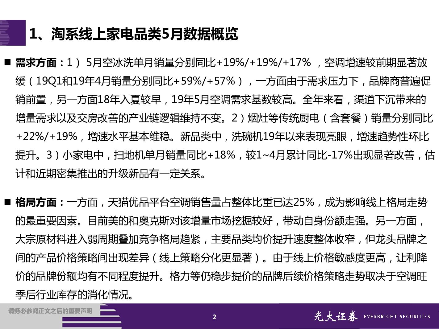 光大证券:家电行业2019年5月淘宝数据跟踪与解读:提前促销空调增速放缓,天猫优品影响品牌格局.pdf