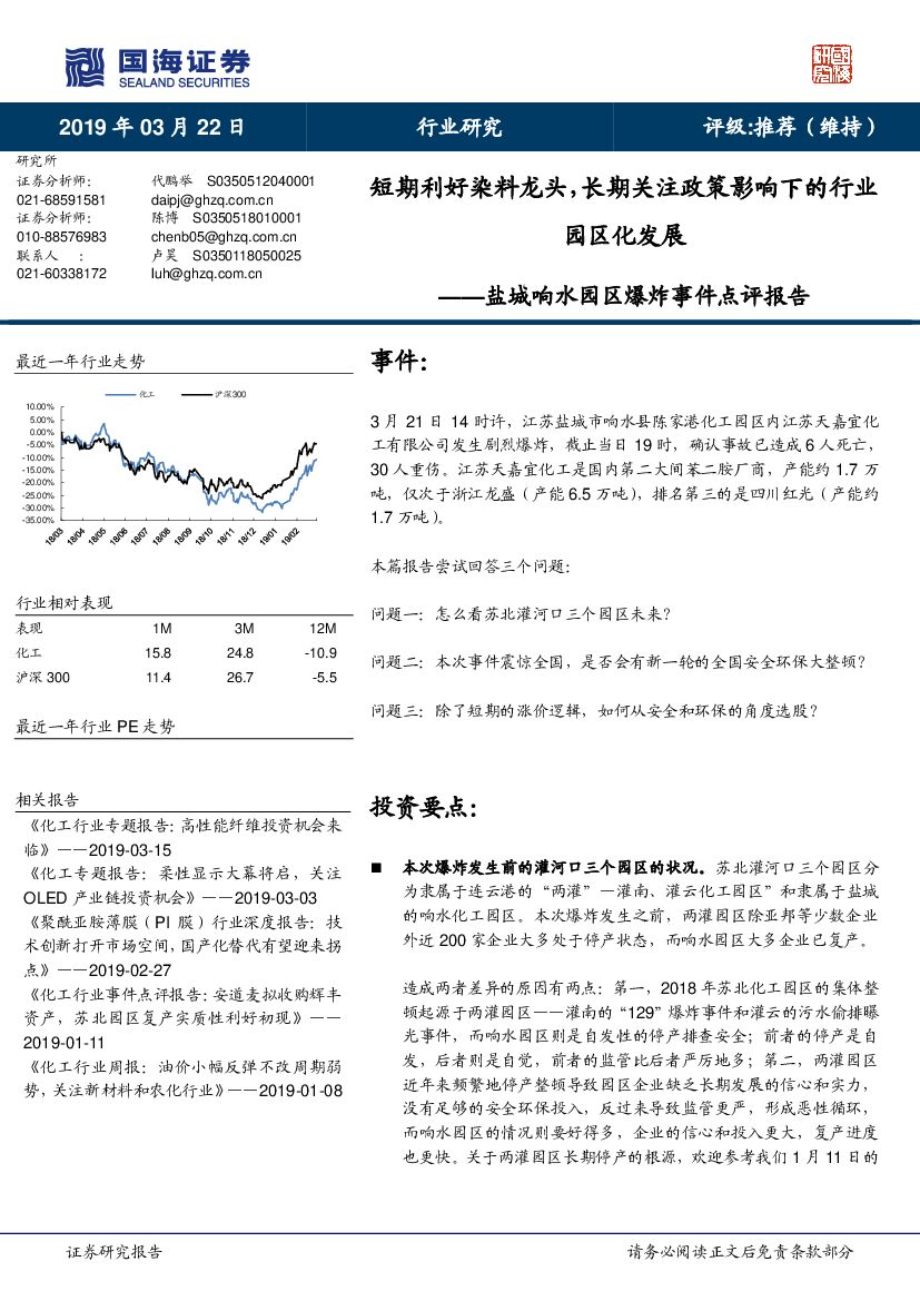 国海证券:盐城响水园区爆炸事件点评报告:短期利好染料龙头,长期关注政策影响下的行业园区化发展.pdf