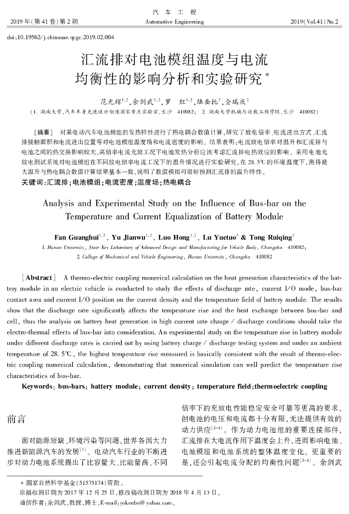 湖南大学:汇流排对电池模组温度与电流均衡性的影响分析和实验研究.pdf