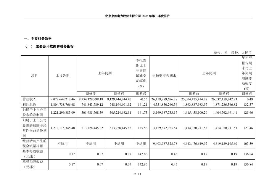600578-京能电力:2025年第三季度报告.pdf