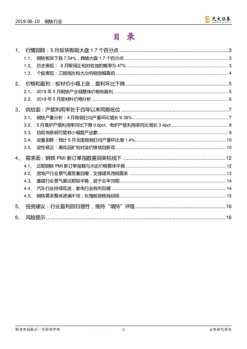 光大证券:钢铁行业动态跟踪报告(2019年6月):钢铁行业呈现供需两弱的格局.pdf