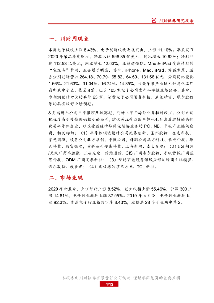 川财证券:电子行业周报:半年报将密集披露,PC/平板产业厂商有望受益宅经济.pdf