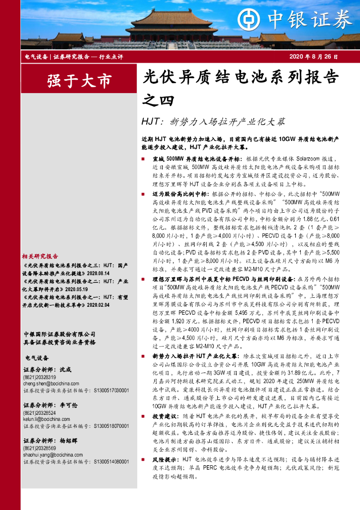 中银证券:光伏异质结电池系列报告之四:HJT:新势力入场拉开产业化大幕.pdf