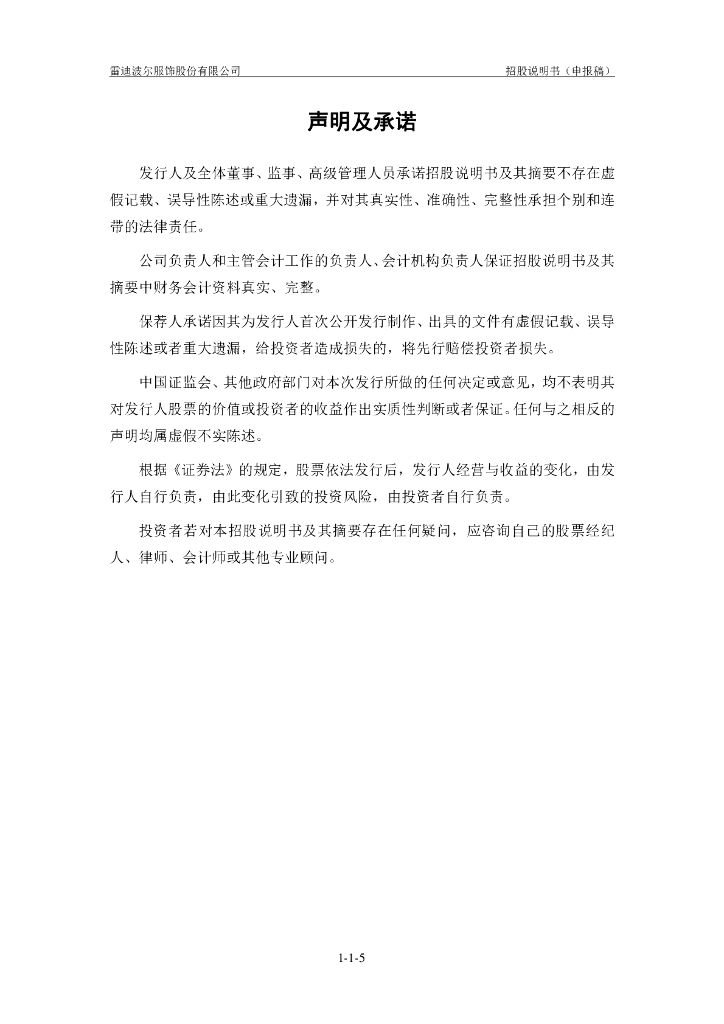 雷迪波尔服饰股份有限公司深交所主板IPO上市招股说明书.pdf