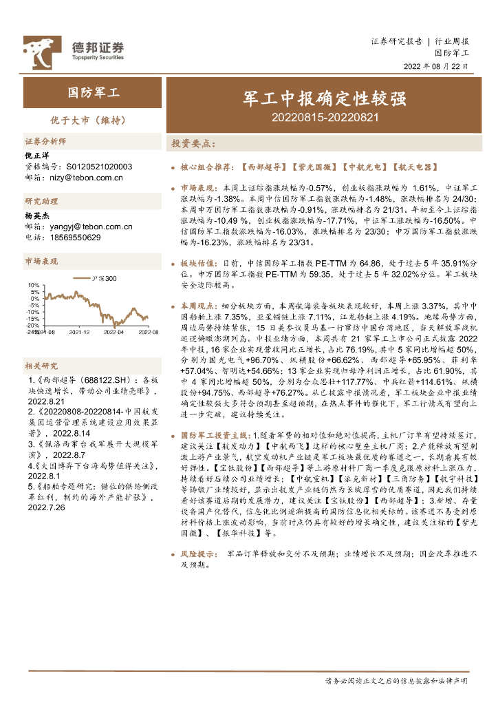 德邦证券:国防军工行业周报:军工中报确定性较强.pdf