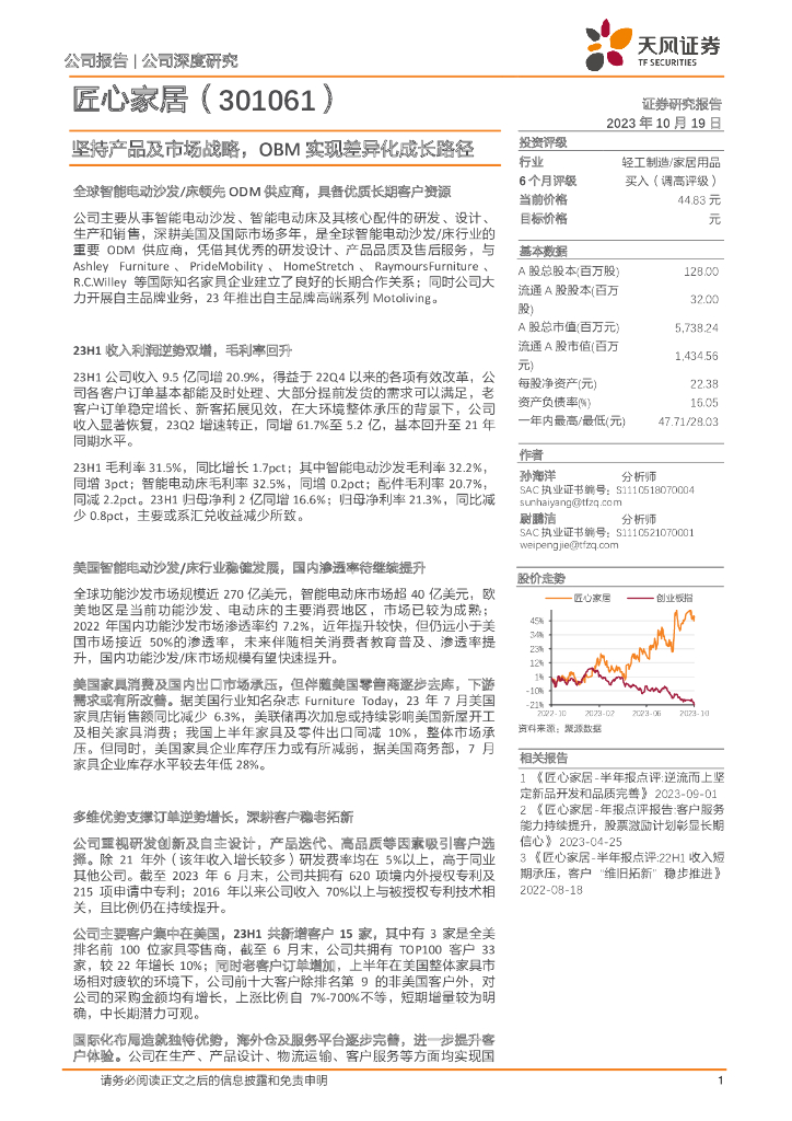 天风证券:匠心家居(301061)-坚持产品及市场战略,OBM实现差异化成长路径.pdf