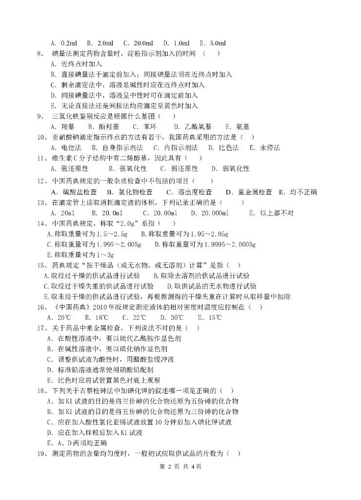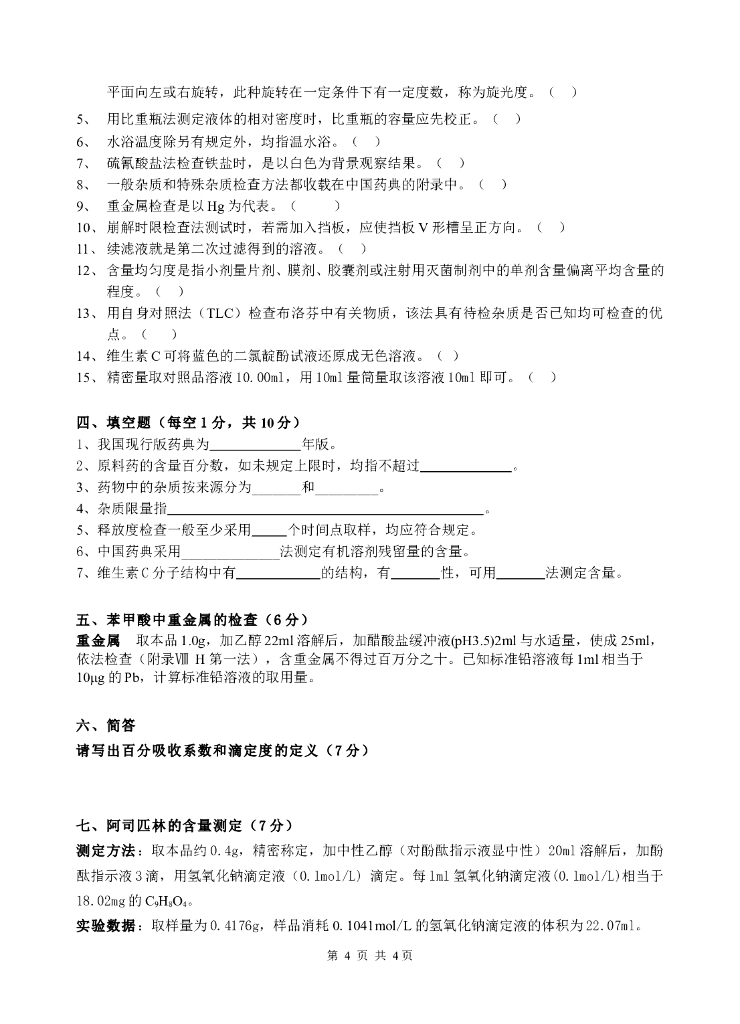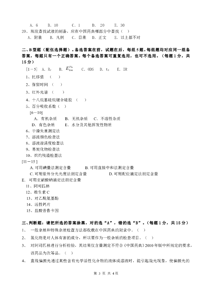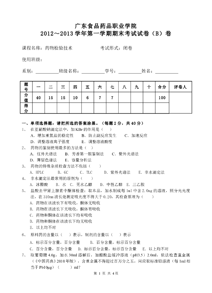 《药物检验技术》测试试卷-药物检验技术期末考试试卷及答案.pdf