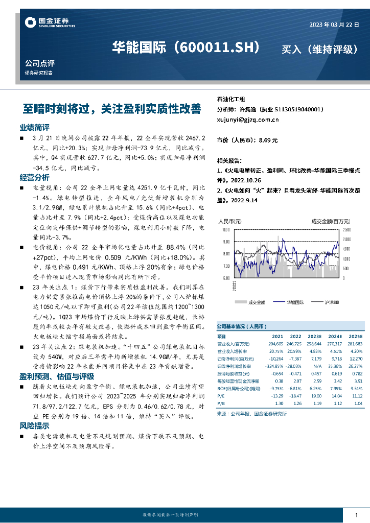 国金证券:华能国际(600011)-至暗时刻将过,关注盈利实质性改善.pdf